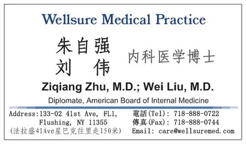 | 朱自强医生,毕业于浙江大学医学院和中国协和医科大学,在New York Medical College/Brookdale University Hospital and Medical Center完成內科住院医师培训,获得美国内科学会专科文凭。朱医生目前是Elmhurst Hospital Center以及NewYork-Presbyterian Queens的主治医师。 刘伟医生,毕业于河北医科大学和中国协和医科大学,在New York Medical College/Brookdale University Hospital and Medical Center完成內科住院医师培训,获得美国内科学会专科文凭。刘医生目前是NewYork-Presbyterian Queens的主治医师。 |